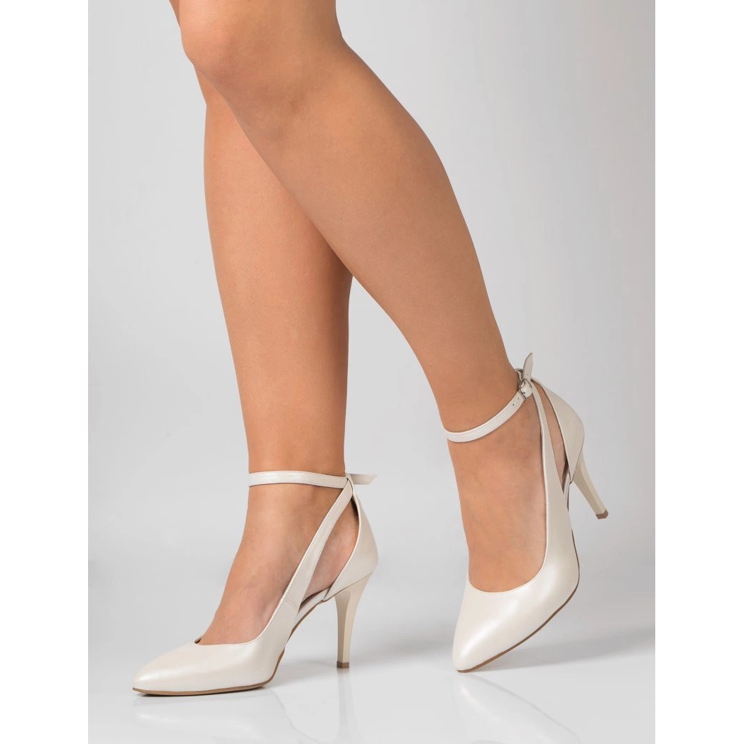Descubra a elegância e a conveniência em um, graças ao modelo Butdam Livia na cor do eCre. Essas bombas únicas, presas com tornozelo, com o nariz com ponta, são a combinação perfeita de design e funcionalidade da moda que serão apreciados por todos os amantes da dança.