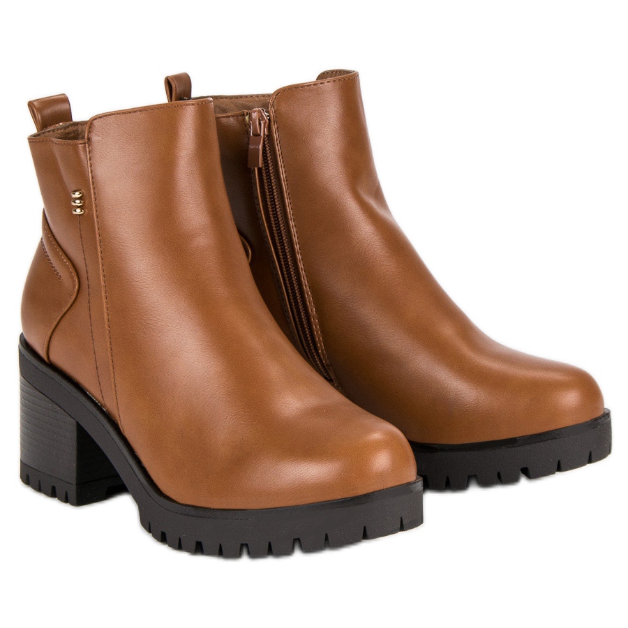 Apresentamos botins de salto alto camel castanhos - a escolha perfeita para o outono e inverno, que alia estilo e conforto. Fabricados em couro ecológico de alta qualidade, esses botins apresentam calcanhar reforçado, que proporciona suporte e estabilidade adicionais a cada passo.