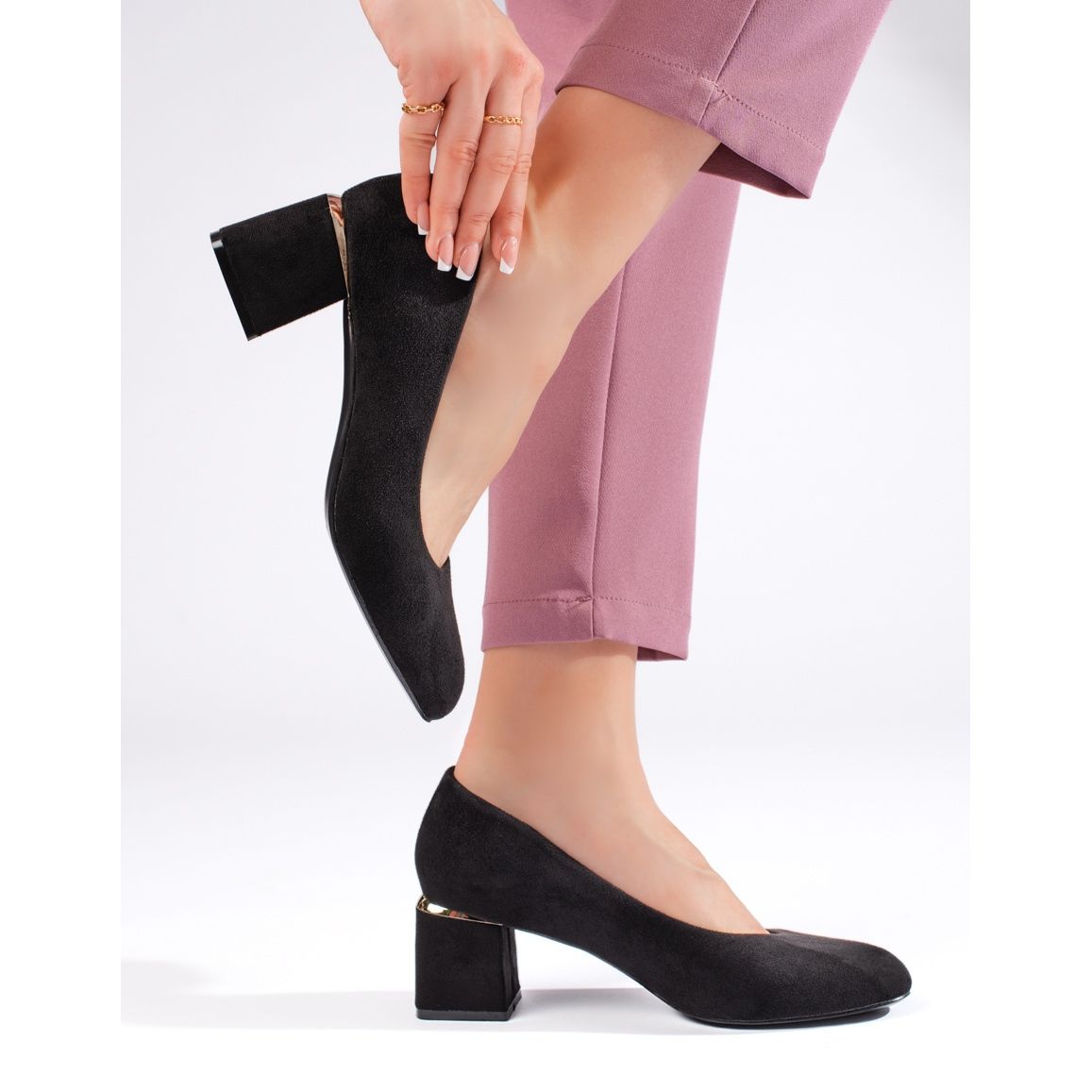 - Modelo: Salto alto em camurça preta