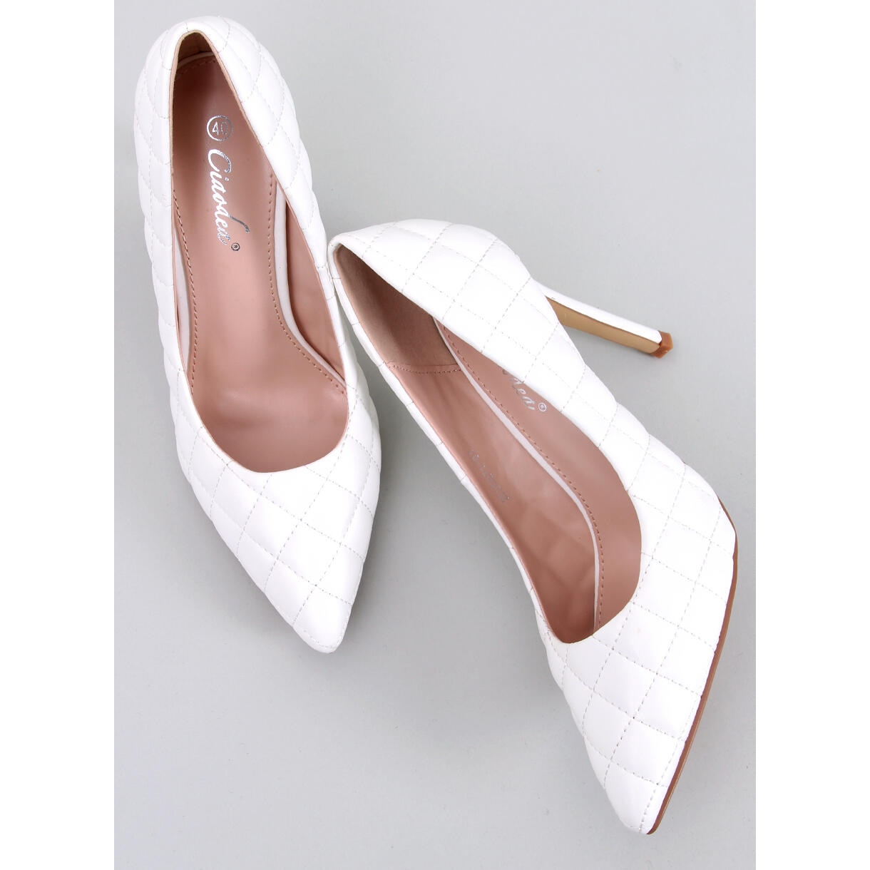 Descubra elegância e conforto com os sapatos acolchoados femininos Millie White da marca BM. Estes sapatos exclusivos com salto de 10,5 cm são a escolha perfeita para qualquer ocasião especial, como casamento, baile de formatura ou formatura. O corte bem torneado com dedos cônicos e um lindo padrão acolchoado confere-lhes um caráter único.