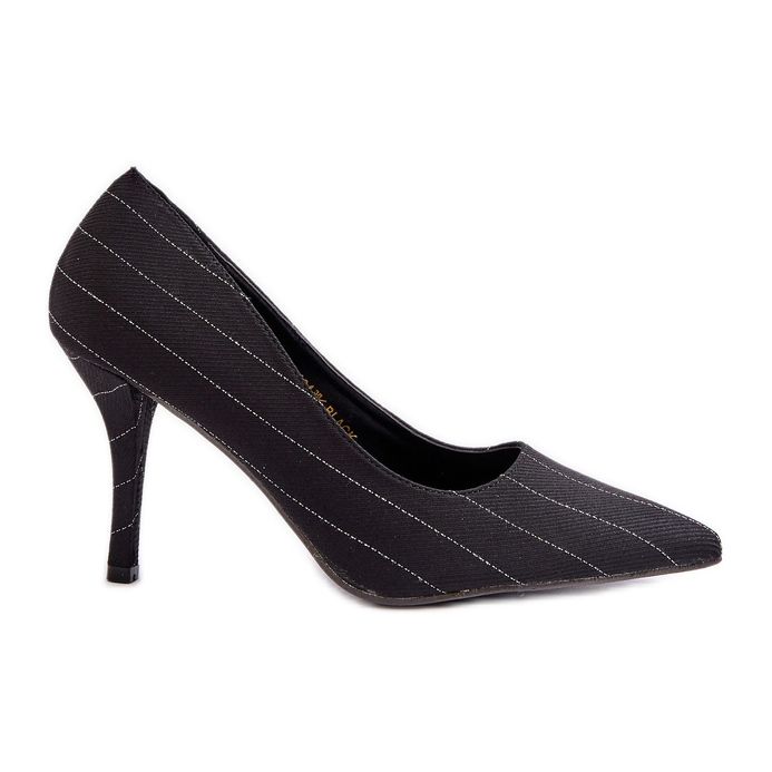- Modelo: Salto Alto Feminino em Tecido Preto Listrado