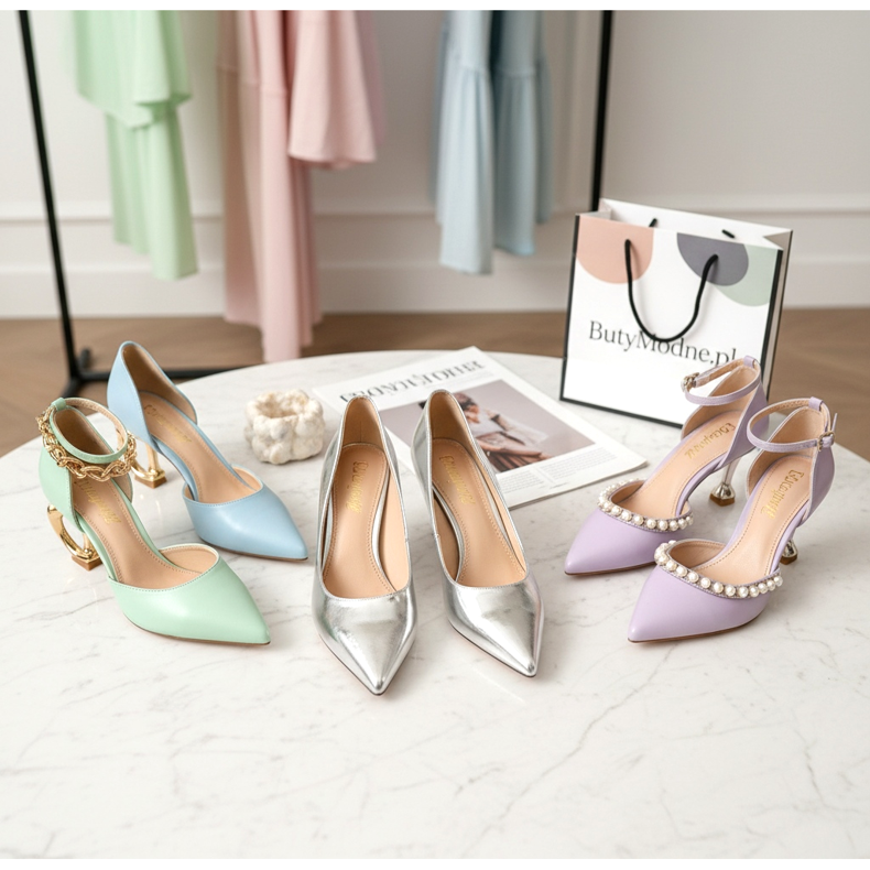 As tendências 2026 em salto gatinho vão em direção a diversas expressões estéticas. Em primeiro lugar, a ponta pontiaguda - clássica e elegante, alonga opticamente o pé. Em segundo lugar, salto gatinho metálico dourado ou prateado - para quem quer brilhar. Em terceiro lugar, as cores pastéis - lilás, azul claro, menta - em linha com as tendências de cores da primavera.
