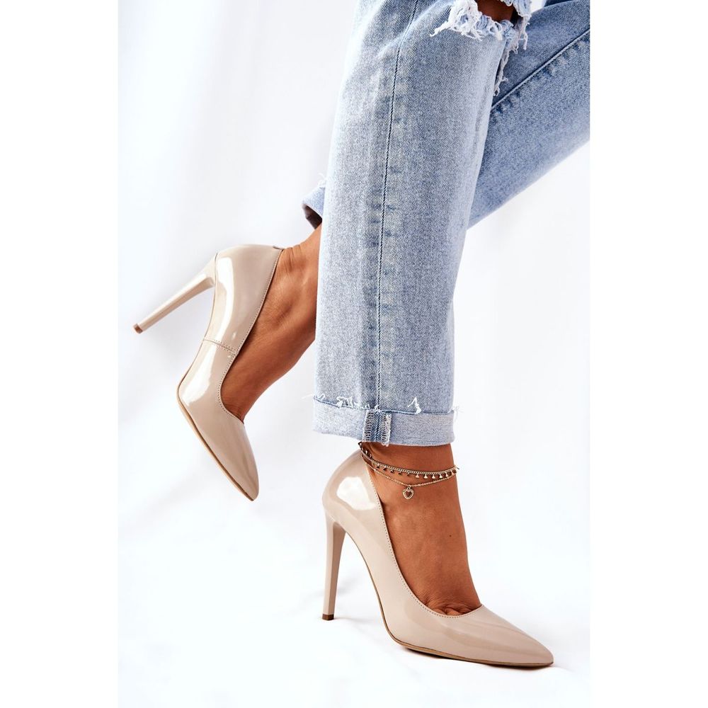 A cor bege destes saltos altos torna-os extremamente universais e adaptam-se facilmente a vários estilos - desde vestidos elegantes, passando por saias, até calças. Além disso, o acabamento lacado confere-lhes um brilho único que chama a atenção.