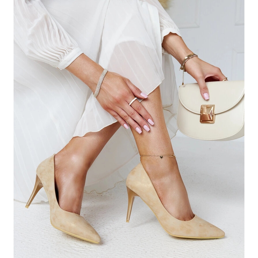 Os saltos altos metálicos dourados com uma inserção de couro são a escolha perfeita para todas as mulheres que querem adicionar um pouco de brilho à sua roupa diária ou noturna. Essas bombas elegantes, feitas de plástico de alta qualidade, combinam estilo e conforto de uso graças à inserção de couro.