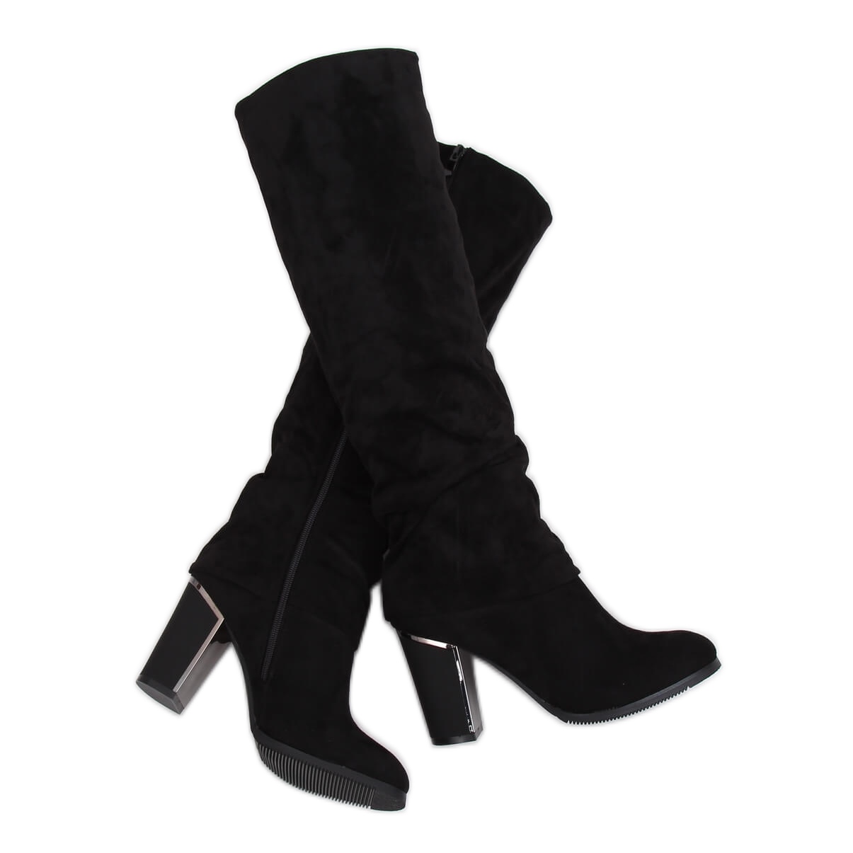 As botas pretas de salto alto 1103-GG Black são a escolha perfeita para mulheres que valorizam calçados modernos e elegantes. Este modelo é único graças à sua parte superior com babados que chama a atenção. Um salto estável de 9 cm de altura com acabamento fosco combina perfeitamente com o material camurça, acrescentando charme à silhueta e alongando-a opticamente.