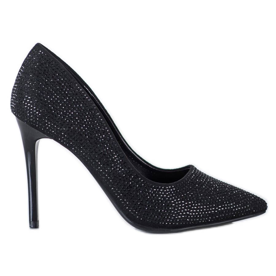 Apresentamos salto alto preto com cristais da SHELOVET - uma verdadeira joia entre o calçado feminino elegante. Estes sapatos intemporais são a escolha perfeita para saídas à noite, festas e vários tipos de celebrações.