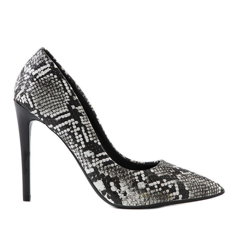 Os saltos altos com estampa de pele de cobra preto e branco da marca Andrew são a escolha perfeita para mulheres que desejam adicionar um pouco de personalidade ao seu estilo. O deslumbrante padrão preto e branco, inspirado na pele de cobra, chama a atenção e faz com que cada par desses sapatos se destaque na multidão.