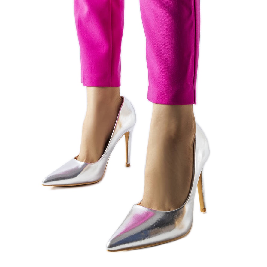 As bombas de verão elegantes escorregaram com uma superfície metálica brilhante - ideal quando você deseja adicionar uma estilização de destaque distinto. O esbelto esbelto e o salto alto enfatizam a figura feminina, e a colocação instantânea da estrutura inserida os torna práticos todos os dias e para ocasiões especiais.