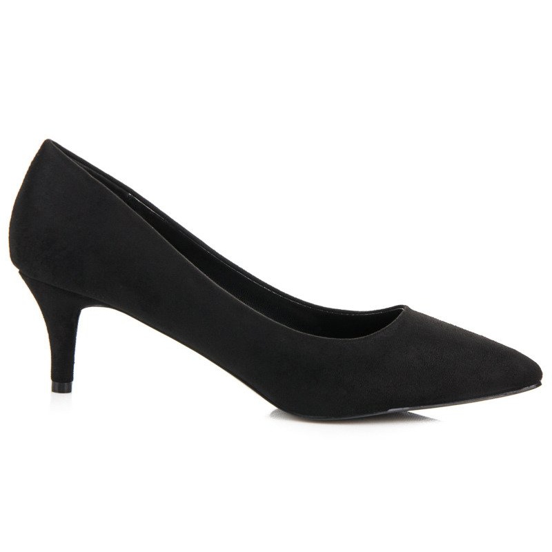 Graças ao seu formato minimalista, estes sapatos serão perfeitos para mulheres que apostam nos clássicos e nas soluções de moda intemporais. Cada passo neste calçado será confortável graças à sola sintética, e a caixa original do fabricante fará dele uma excelente ideia para presente. Escolha salto alto em camurça preta e sinta-se confiante e estilosa todos os dias!