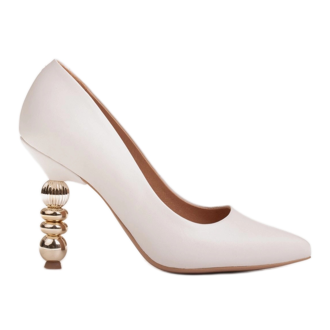 Detalhes: Marco Shoes Salto de couro branco com pedras
