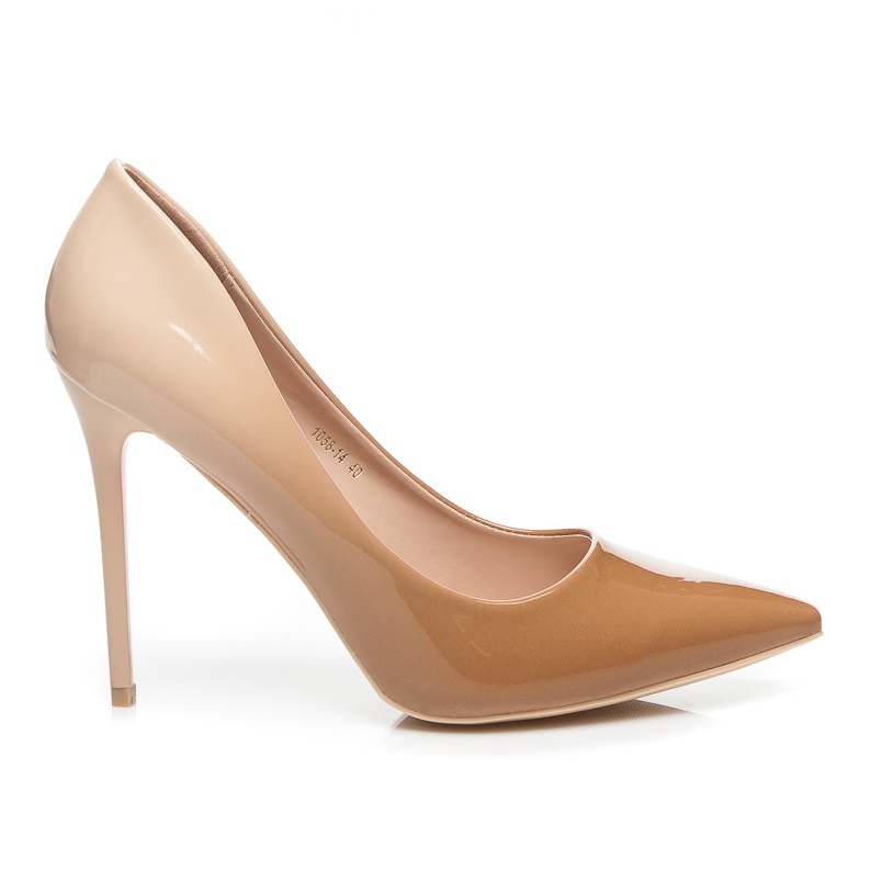 Os scarpins Vices distinguem-se pelo acabamento lacado, o que lhes confere um aspecto elegante, e a delicada transição das cores castanho e bege introduz um toque de modernidade e originalidade. O fecho deslizante facilita a colocação, tornando-os uma escolha conveniente para o dia a dia e ocasiões especiais.
