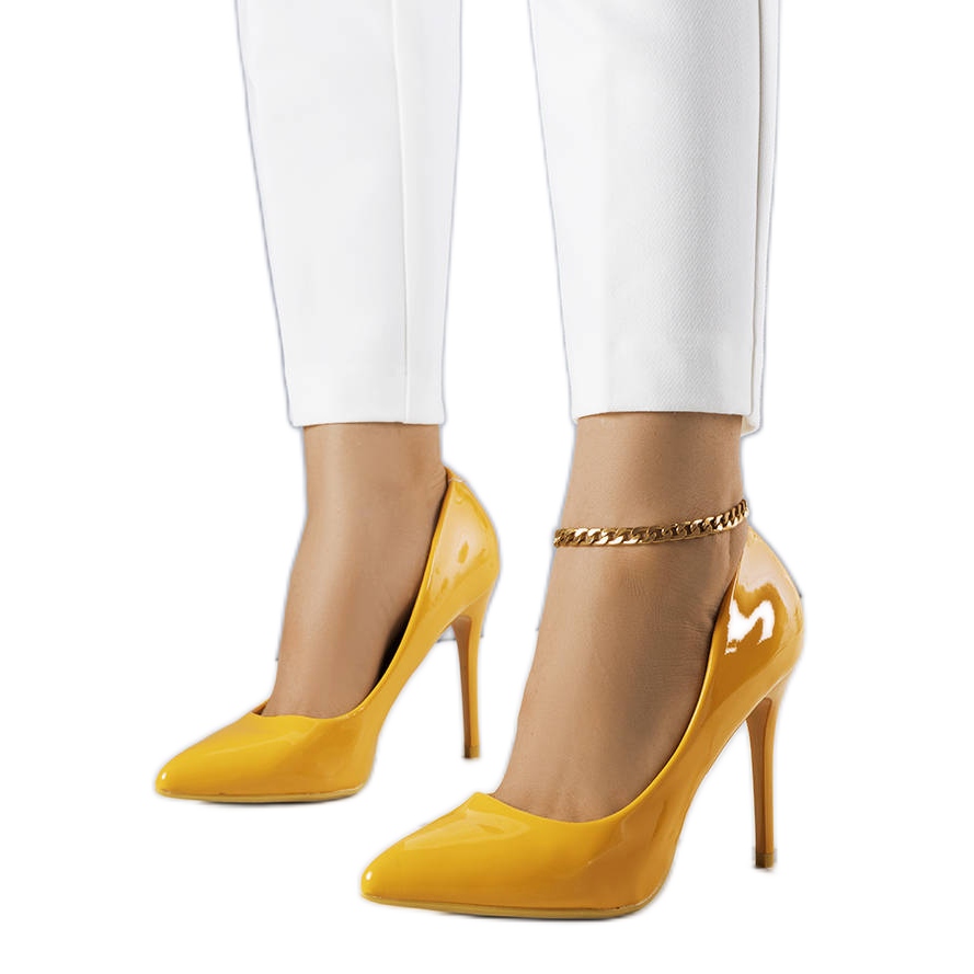 Enriqueça o seu guarda-roupa com os exclusivos saltos altos Tiffany do fabricante BM, que darão personalidade a qualquer estilo. O salto fino e alto de 10,5 cm e a ponta pontiaguda realçam eficazmente as pernas, conferindo-lhes uma elegância extraordinária. Feitos de couro ecológico envernizado, esses saltos altos não só têm uma aparência fenomenal, mas também proporcionam conforto de uso graças à palmilha macia em couro ecológico.