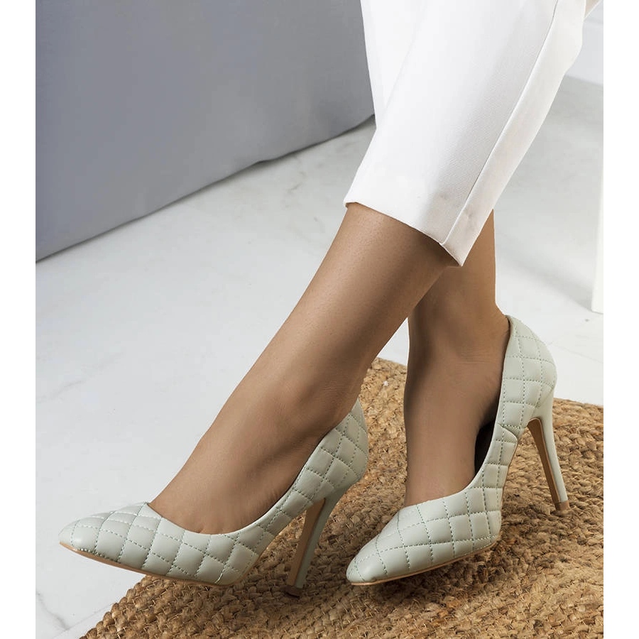 Bombas elegantes que roubarão a atenção em todas as partes. A combinação de um clássico salto de 10 cm de altura com nariz quadrado na moda e uma parte superior acolchoada feita de couro ecológico de alta qualidade cria um corte elegante e ao mesmo tempo em que o corte moderno. O modelo é ideal quando você deseja causar uma impressão impressionante.