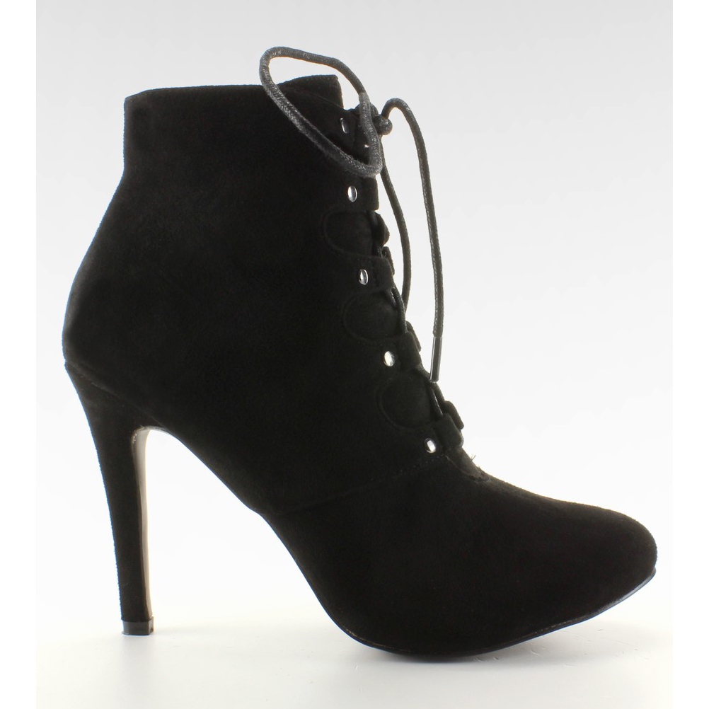 H253 Botins pretos de salto alto com atacadores - preto, camurça