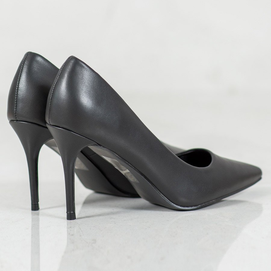O salto alto de 9 centímetros não só proporciona um visual atraente, mas também alonga opticamente as pernas. Uma característica desse salto alto é uma confortável palmilha confeccionada em couro ecológico, que torna confortável caminhar com ele, mesmo por muito tempo. Um bico redondo e um salto reforçado embutido enfatizam ainda mais seu design clássico.