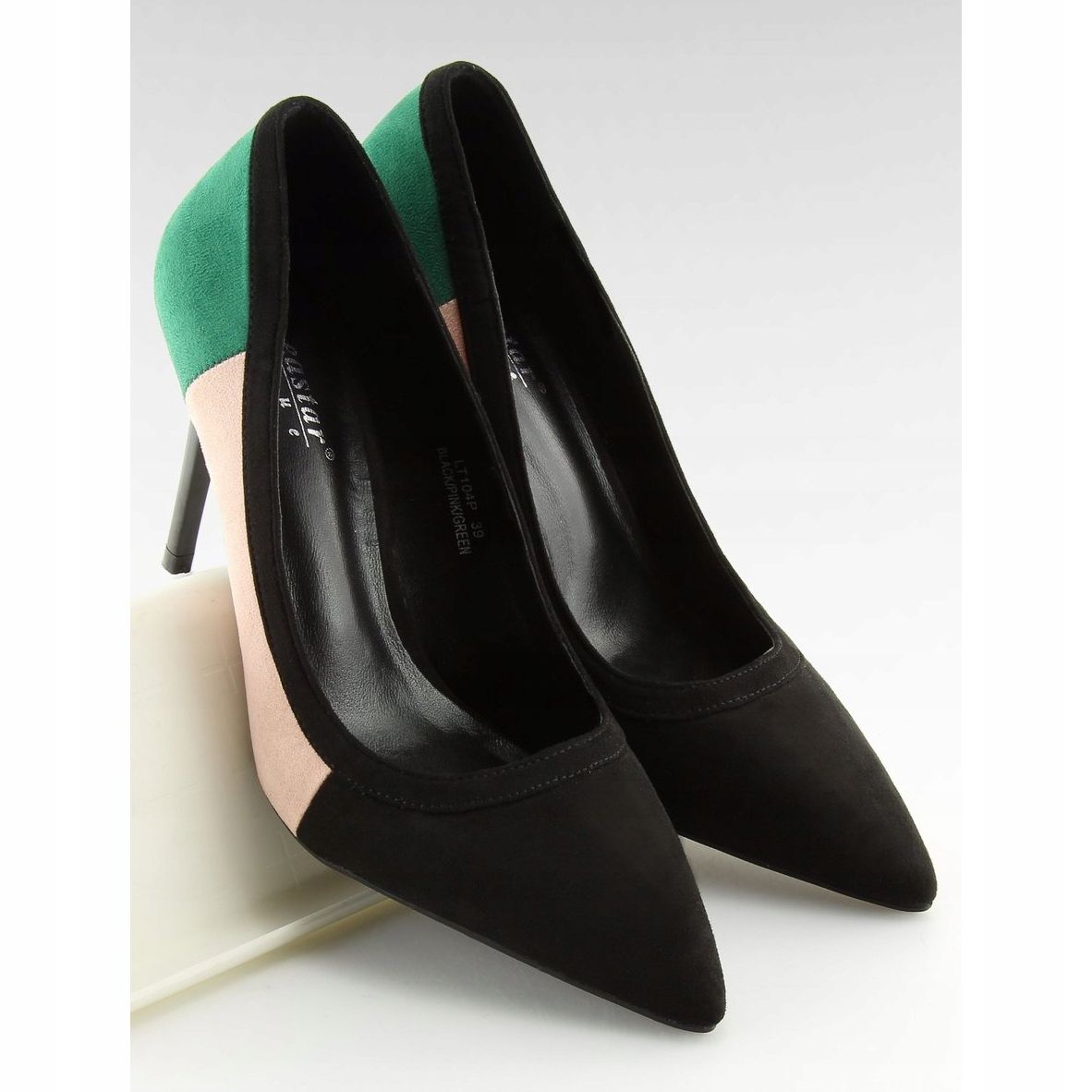 Inna marka Saltos altos femininos tricolor LT104P PRETO / ROSA / VERDE