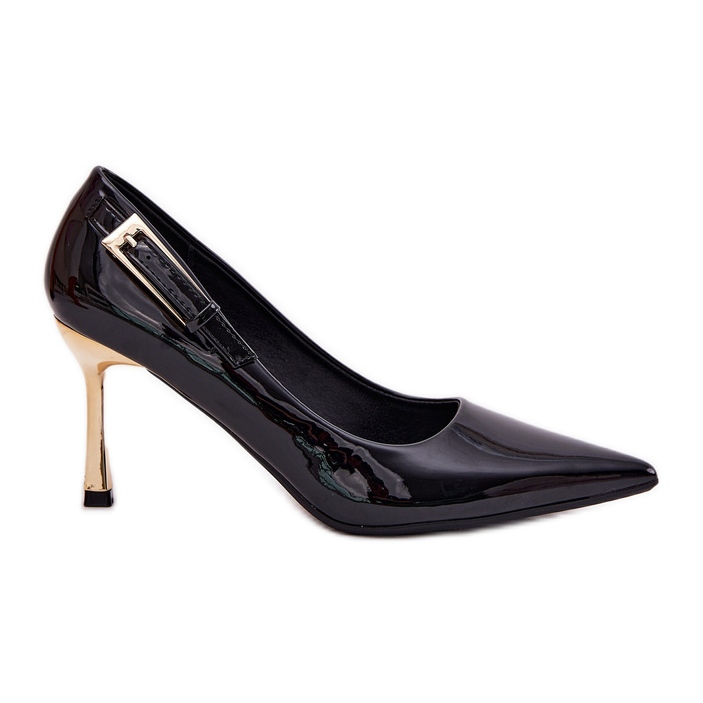 Descubra a elegância e o estilo moderno, graças aos nossos saltos envernizados com um grampo de ouro em preto. Esses sapatos femininos exclusivos, feitos de couro ecológico de alta qualidade, combinam conforto e um design sofisticado que atrai a atenção.