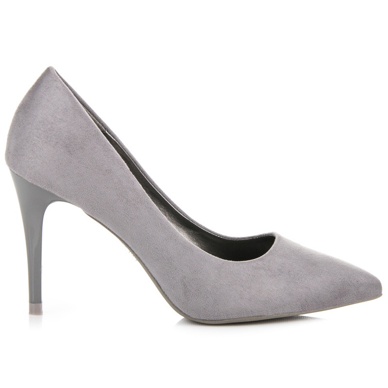 A altura do salto de 9,5 cm confere elegância e realça a figura, tornando-os um complemento perfeito para qualquer estilo. A cor cinza e a falta de estampa tornam esses saltos altos universais e combinam tanto com vestidos quanto com calças. Escolha os nossos saltos altos em camurça cinzenta e dê um toque de luxo ao seu guarda-roupa!