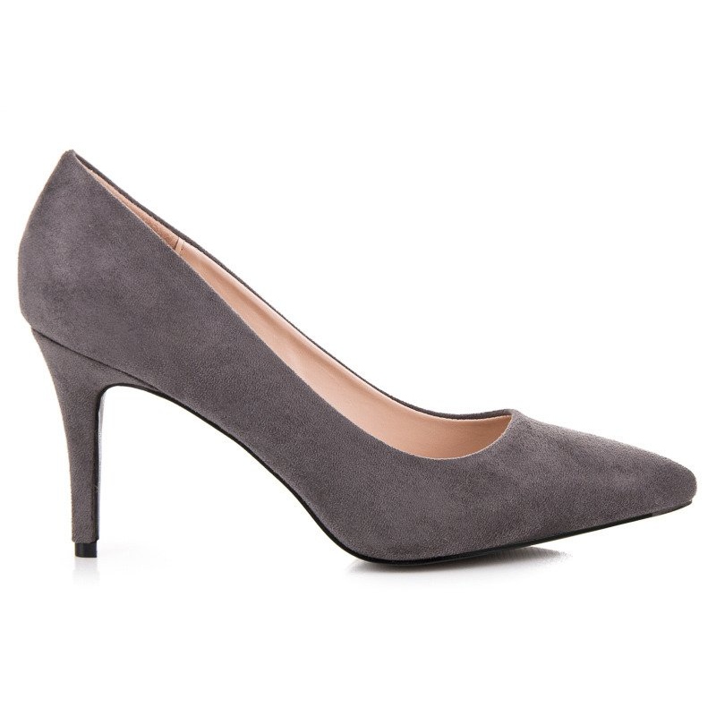 Descubra elegância e estilo com o salto alto cinza Milaya. Estes sapatos de camurça são a escolha perfeita para todas as mulheres que desejam se sentir únicas e confiantes. A altura do salto de 10 cm confere elegância à silhueta e ao mesmo tempo garante conforto de uso graças à palmilha de perfil perfeito em couro ecológico.