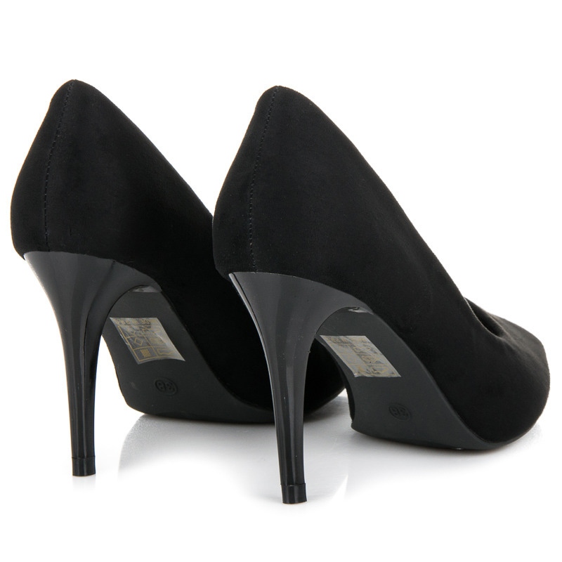 As bombas possuem fecho deslizante, o que torna sua colocação rápida e conveniente. A sua cor preta clássica e dominante faz com que combinem com muitos estilos diferentes, desde vestidos elegantes a calças casuais. A palmilha confeccionada em couro ecológico garante conforto o dia todo e a sola sintética garante boa aderência.