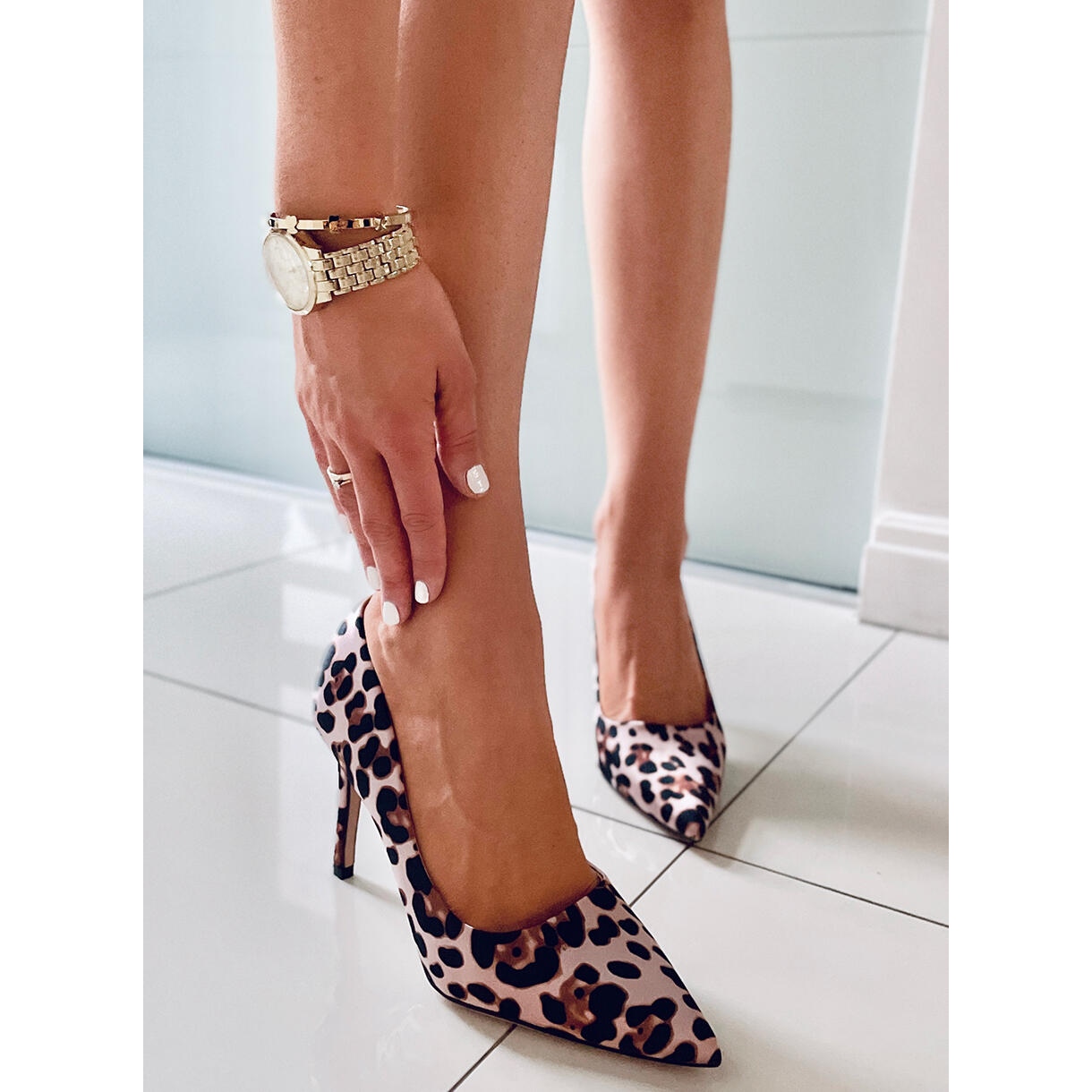 Descubra o estilo e a elegância únicos com os sapatos femininos de salto alto BM Telisha Leopard em tons de bege e marrom. Estes lindos saltos altos com altura de salto de 10 cm distinguem-se por um padrão pontilhado único que com certeza vai chamar a atenção e dar personalidade a qualquer estilo. O design com dedos delicados e pontiagudos destaca lindamente a figura, fazendo com que as pernas pareçam mais finas e bem torneadas.