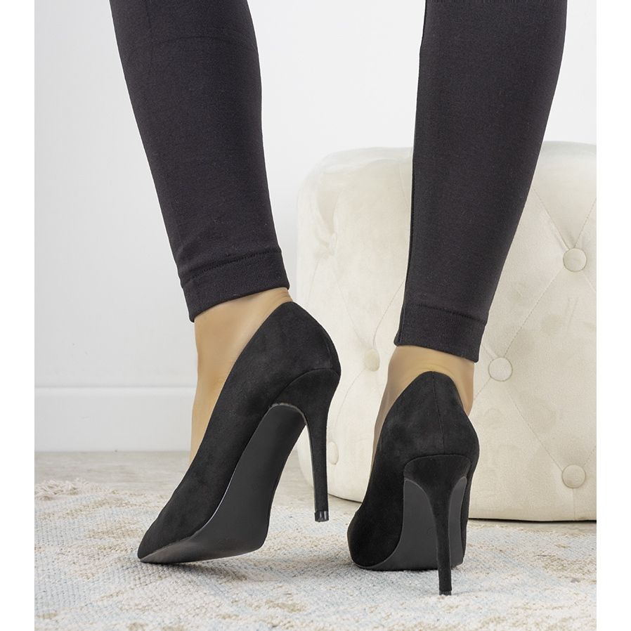 Os saltos altos clássicos em camurça preta Hyirnar são uma proposta que se adapta perfeitamente ao estilo elegante de cada mulher. Estes sapatos, perfeitos para festas, distinguem-se por um salto fino de 10,5 cm e uma biqueira pontiaguda que realça lindamente as pernas. Confeccionados em couro camurça ecológico de alta qualidade, chamam a atenção pela elegância sutil.