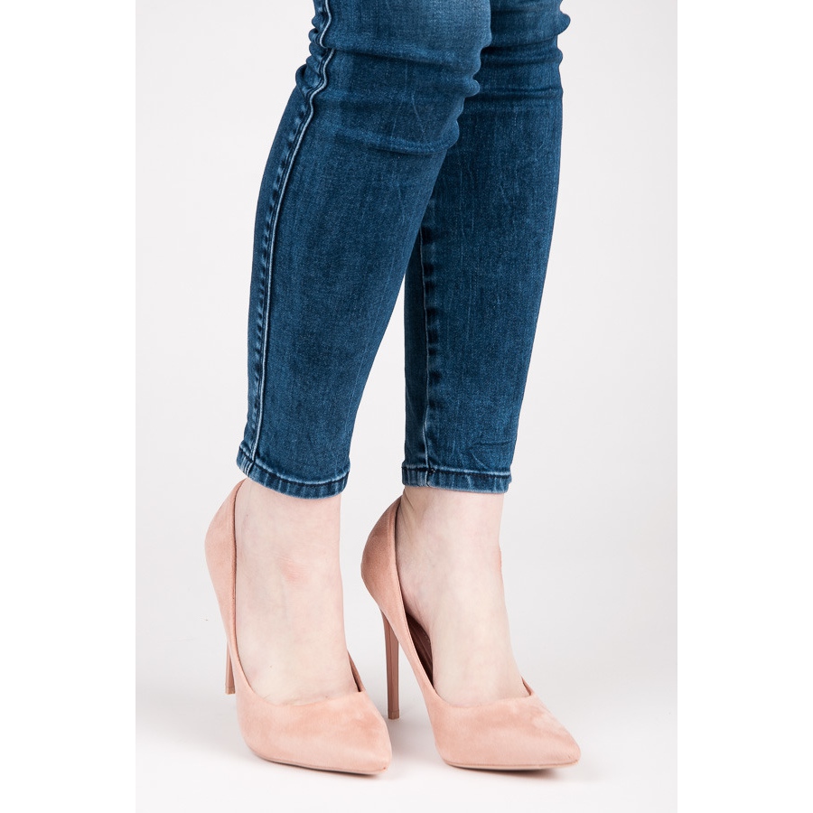 Confeccionados em couro camurça ecológico, garantem conforto e durabilidade. A sua delicada cor rosa confere-lhes um look subtil mas feminino, perfeito para muitas ocasiões - tanto do dia a dia como especiais. A ponta pontiaguda e o salto alto conferem aos sapatos um caráter sofisticado, e a falta de estampas os torna universais e fáceis de combinar com uma variedade de estilos de estilo.