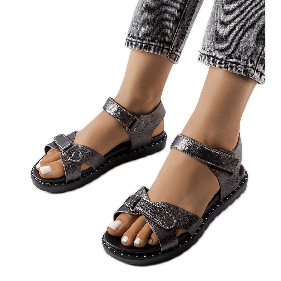 Apresentamos sandálias Bellefeuille cinzentas brilhantes que combinam elegância com conforto excepcional. Estas sandálias femininas clássicas caracterizam-se por um design moderno na tonalidade GUN COLOR, combinando perfeitamente com as tendências do verão. Confeccionados em couro ecológico de alta qualidade, tanto na parte externa quanto no forro, garantem durabilidade e conforto de uso.