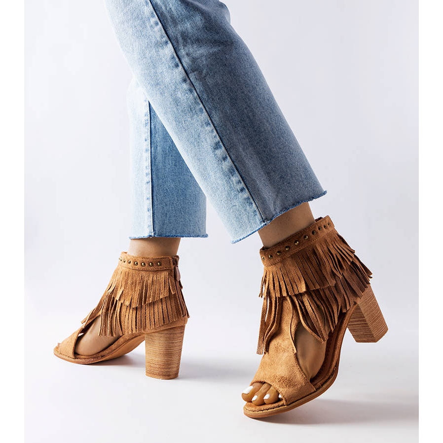 O zíper prático torna-os fáceis de colocar e tirar, e as franjas decorativas acrescentam um pouco de capricho e diversão. A cor caramelo das sandálias é um verdadeiro must-have que combina perfeitamente com vários estilos - desde looks casuais até looks mais elegantes.