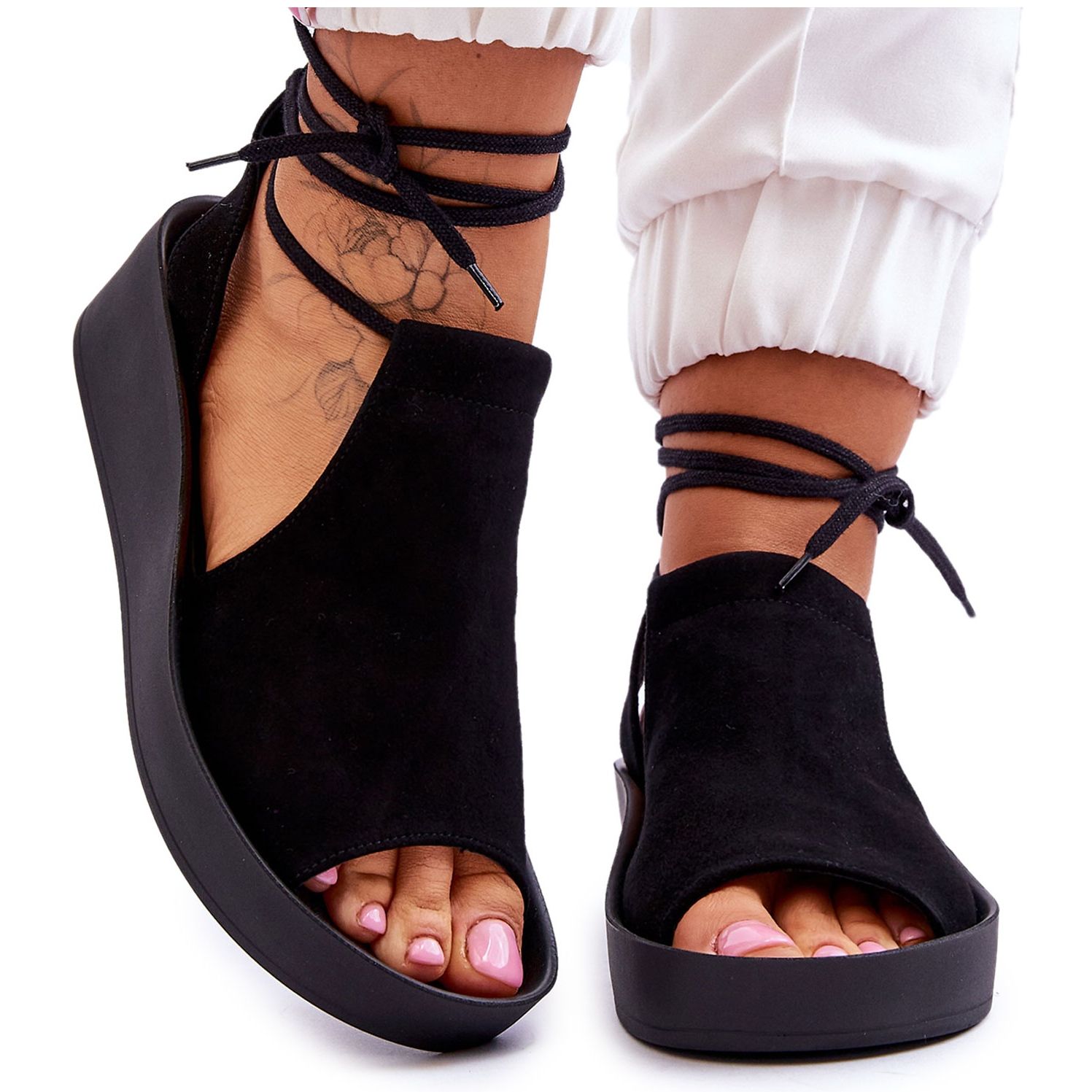 Nicole Sandália de camurça com cunha Nicole 2743/002 preta preto
