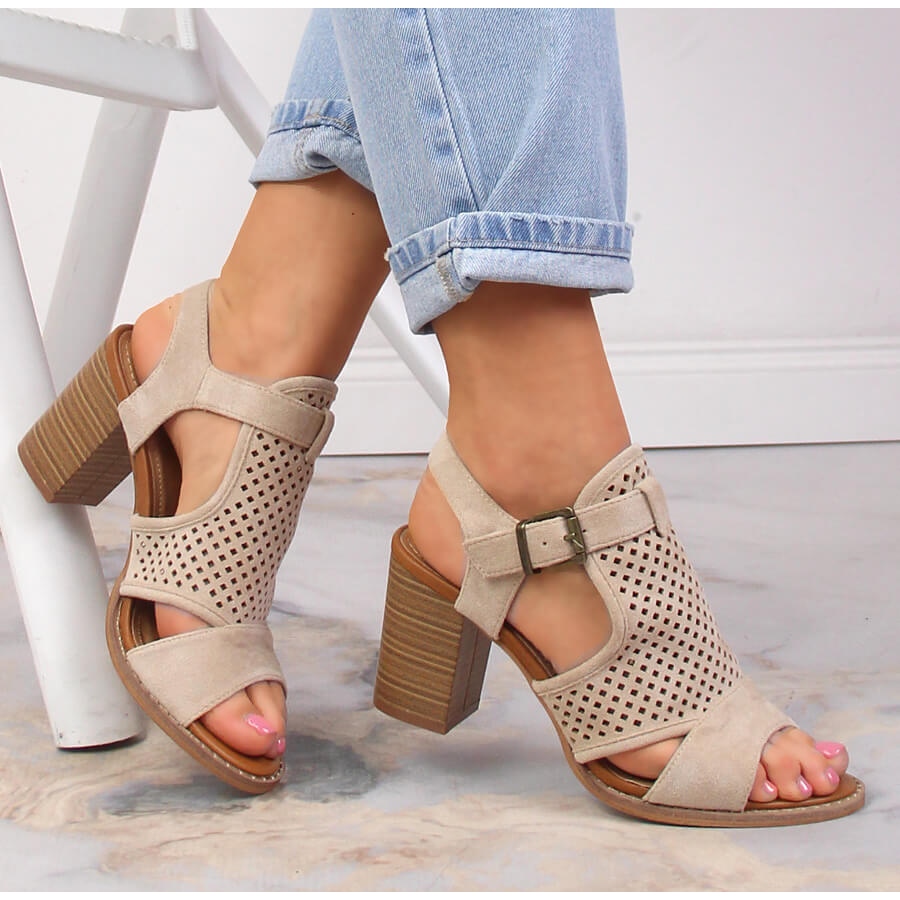 Detalhes: Sandália de camurça em poste com cabedal bege vazado eVento 3581