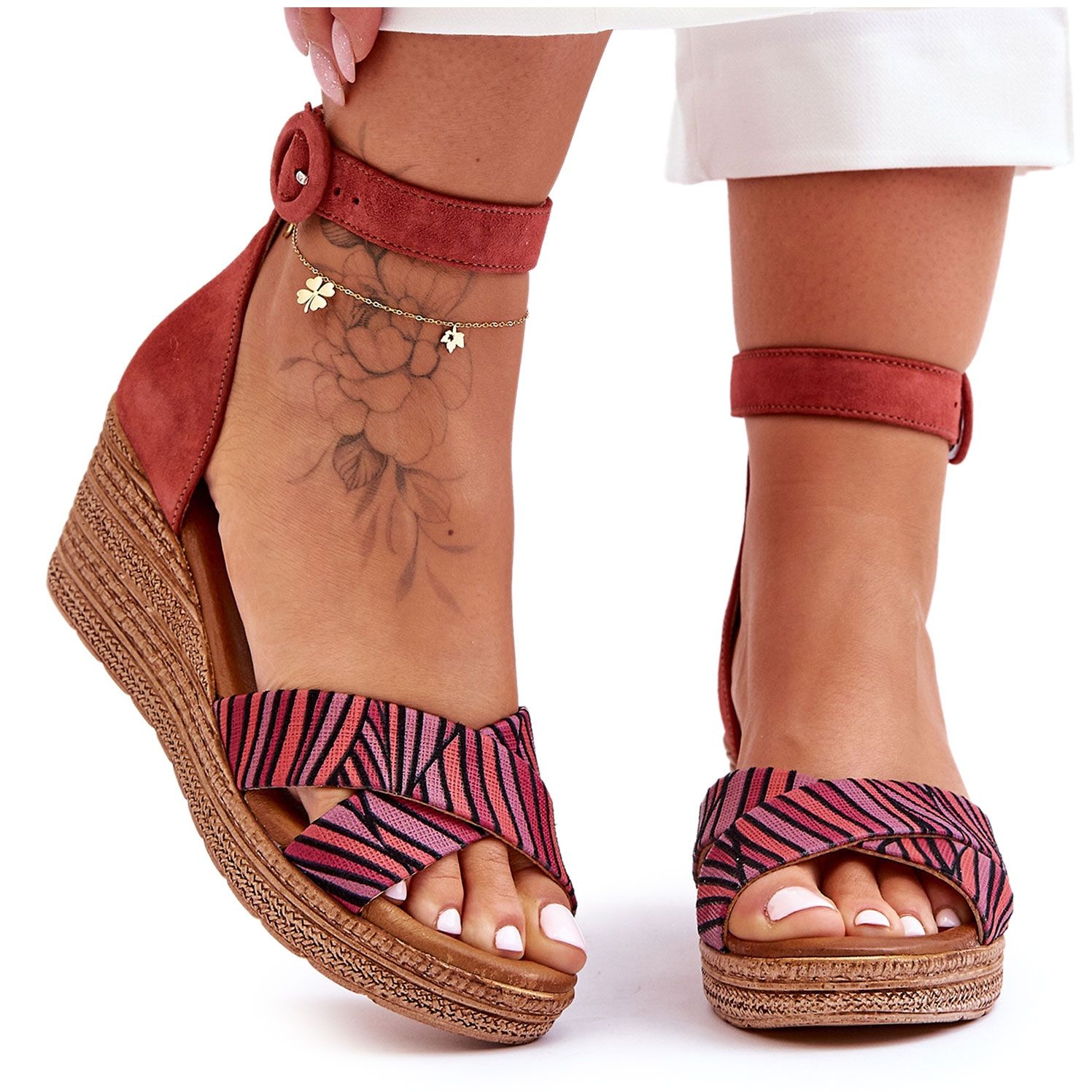 Sandálias de camurça na cunha Maciejka 04565-44-RED