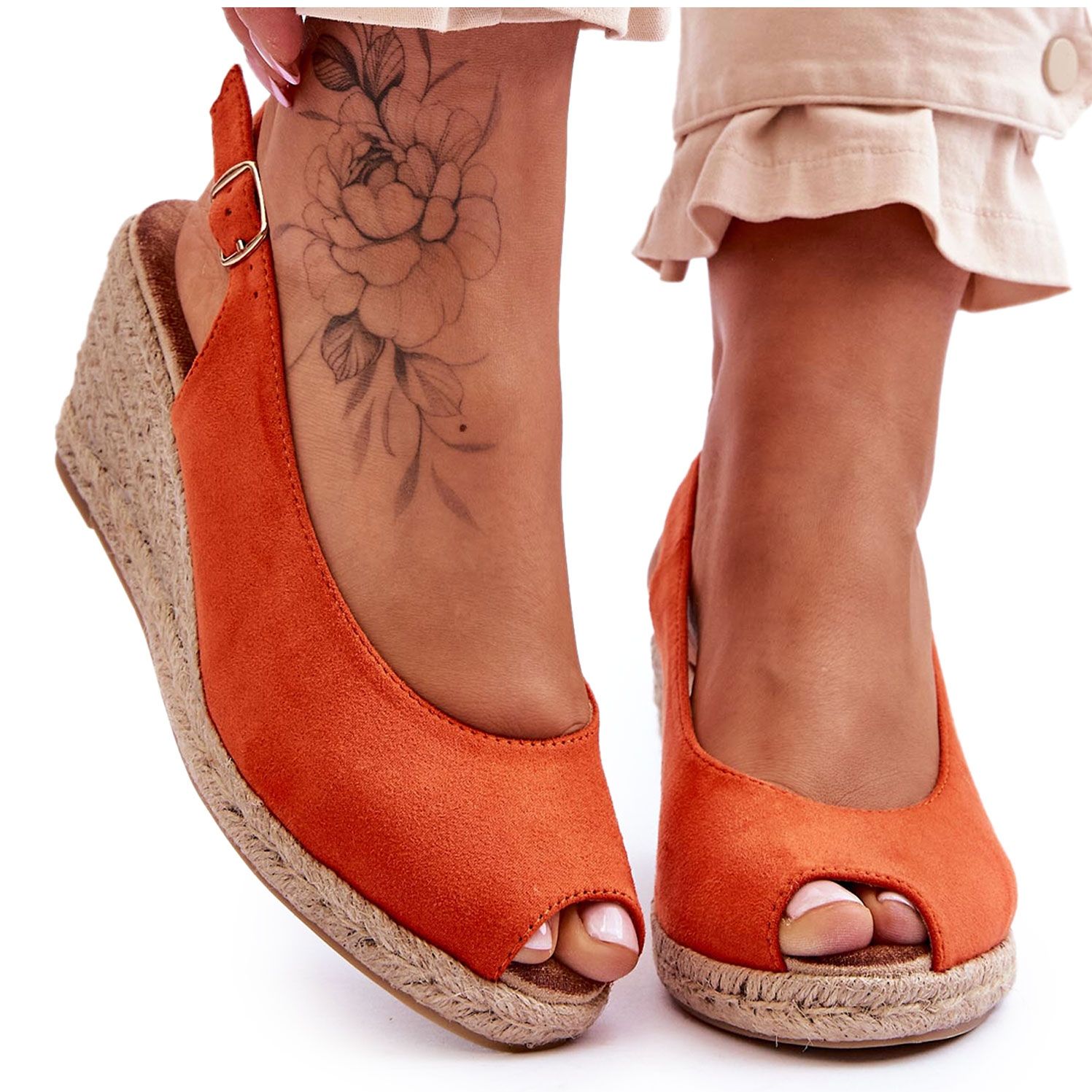 Apresentamos as sandálias de cunha Elsie laranja da FB1 - a escolha perfeita para os dias de verão! Estas sandálias femininas extremamente estilosas são confeccionadas em camurça ecológica de alta qualidade, o que não só lhes confere um visual atraente, mas também garante conforto de uso.