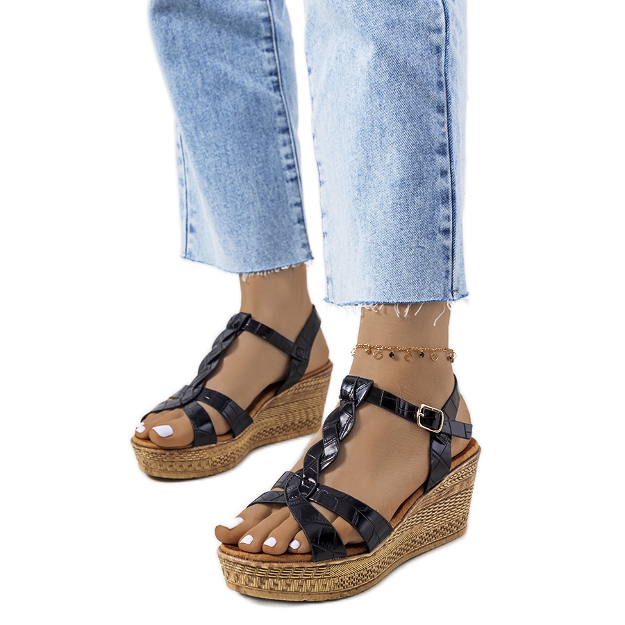 As sandálias de cunha Dalziel pretas são a combinação perfeita de estilo e conforto que certamente enriquecerão o guarda-roupa de qualquer mulher. Este modelo não só irá enfatizar a sua figura, mas também lhe dará elegância e elegância. Confeccionadas em couro ecológico de alta qualidade, as sandálias são decoradas com um padrão atemporal de crocodilo, o que as torna uma opção moderna para diversas ocasiões.