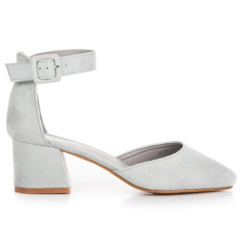 Sandálias de camurça de salto baixo em um elegante tom de cinza são a escolha ideal para mulheres que valorizam uma combinação de estilo e conforto. Confeccionados em couro camurça ecológico de alta qualidade, proporcionam não só um aspecto estético, mas também cuidam do meio ambiente. O design clássico com biqueira redonda faz com que estas sandálias estejam perfeitamente alinhadas com as últimas tendências da moda.
