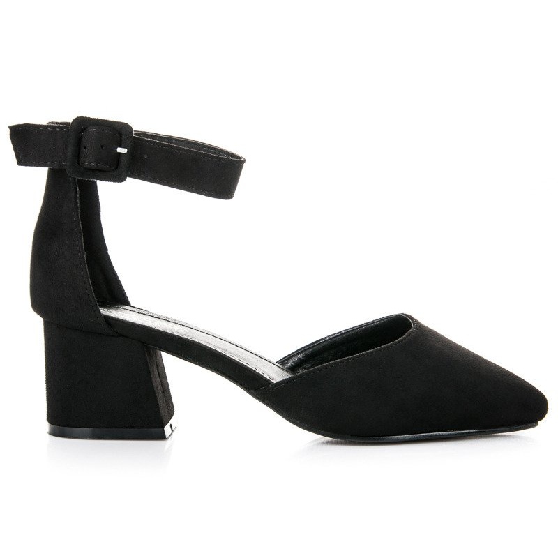 Detalhes: Sandália de salto baixo em camurça preto
