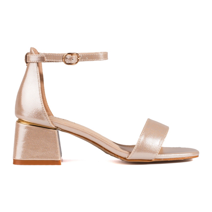 As clássicas sandálias douradas de salto baixo da Vinceza são a escolha perfeita para todas as mulheres que desejam adicionar elegância e elegância ao seu estilo. Estas sandálias exclusivas, confeccionadas em couro ecológico de alta qualidade, combinam o estilo clássico com um toque moderno. O salto aberto e o delicado salto bloco de 5,5 cm tornam-nos não só estéticos, mas também confortáveis de usar.
