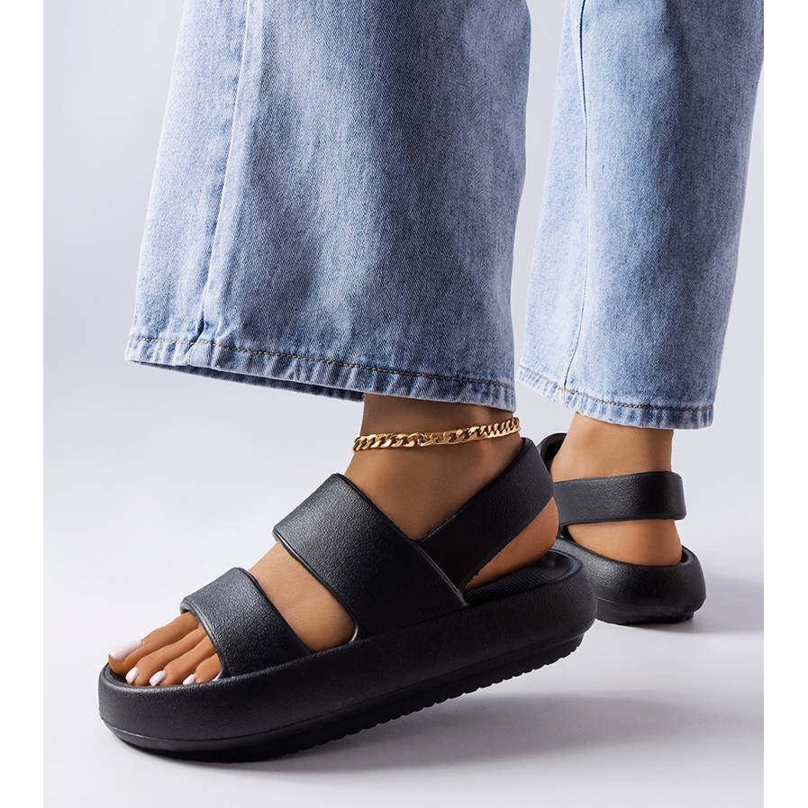 Descubra conforto e estilo com as sandálias Émond pretas, a companhia perfeita para os dias de verão! Estes chinelos exclusivos com sola plana e grossa são feitos de material têxtil tipo espuma, o que garante o máximo conforto de uso. Seu design minimalista com biqueira arredondada e aberta e uma tira frontal larga os torna perfeitos para o estilo do dia a dia.