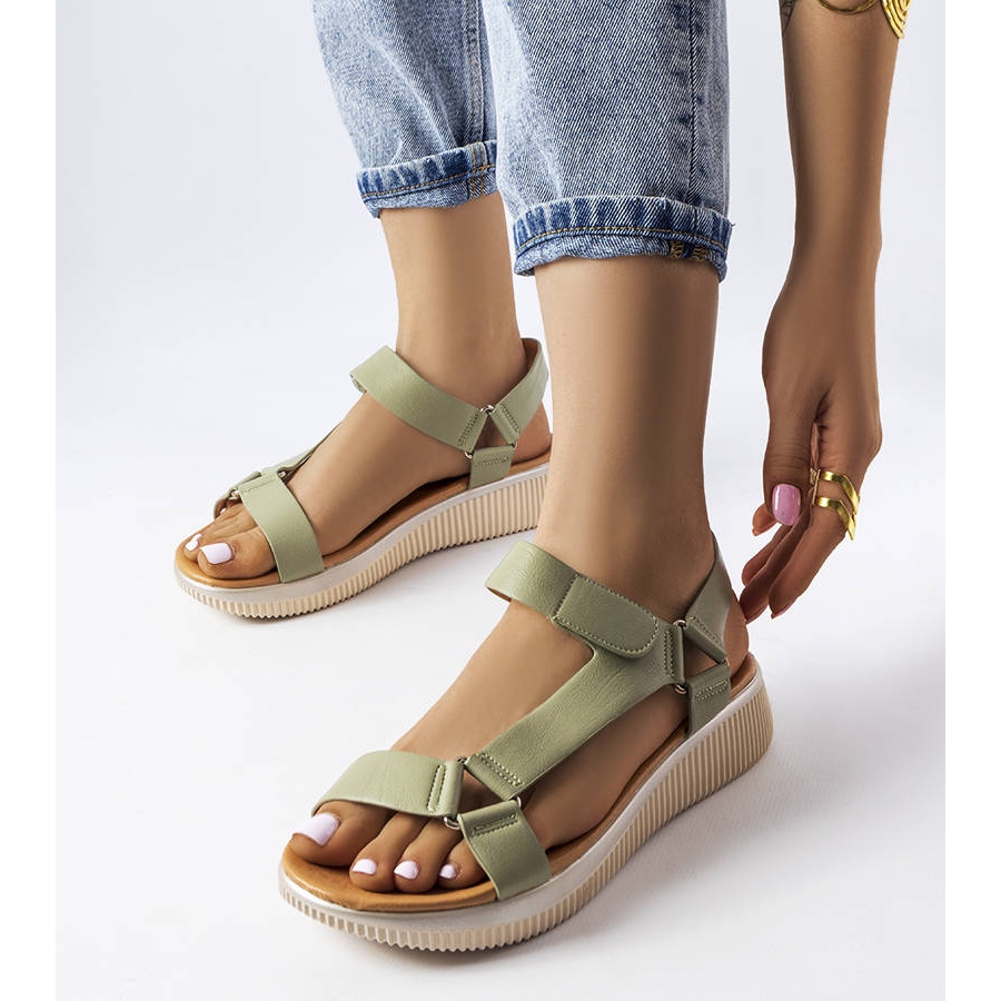 As sandálias Heron na cor verde são a quintessência do estilo de verão. O seu corte desportivo e a sola bege combinam perfeitamente com vários looks de verão. Graças à utilização de couro ecológico tanto no exterior como no interior, as sandálias são amigas do ambiente e garantem conforto de uso.