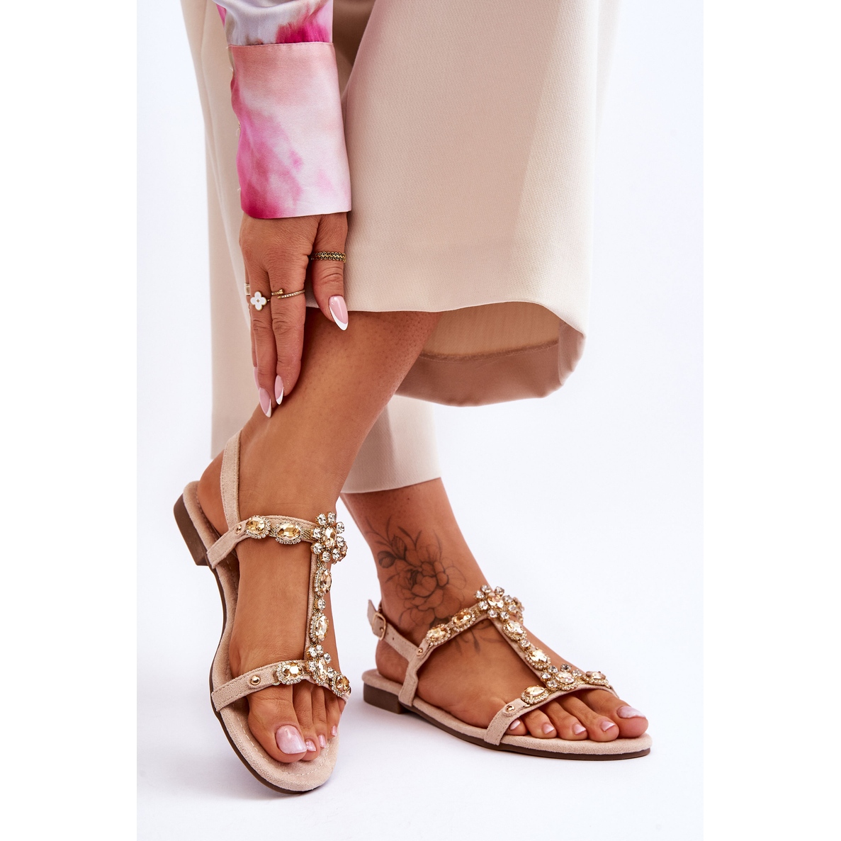 FI1 FI1 Sandália Feminina Camurça Com Pedras Bege Calabrio