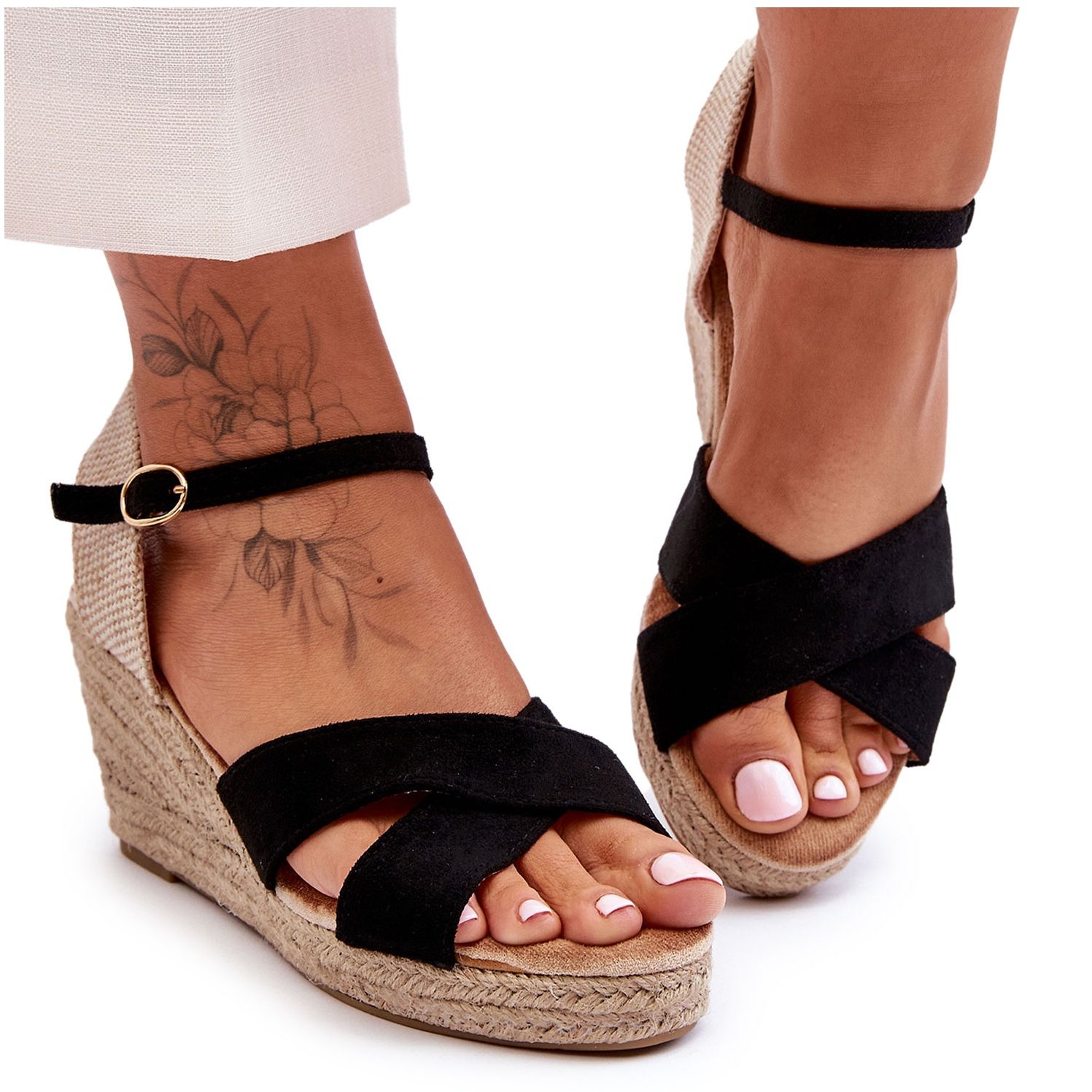 - Modelo: Sandálias de camurça em uma cunha trançada