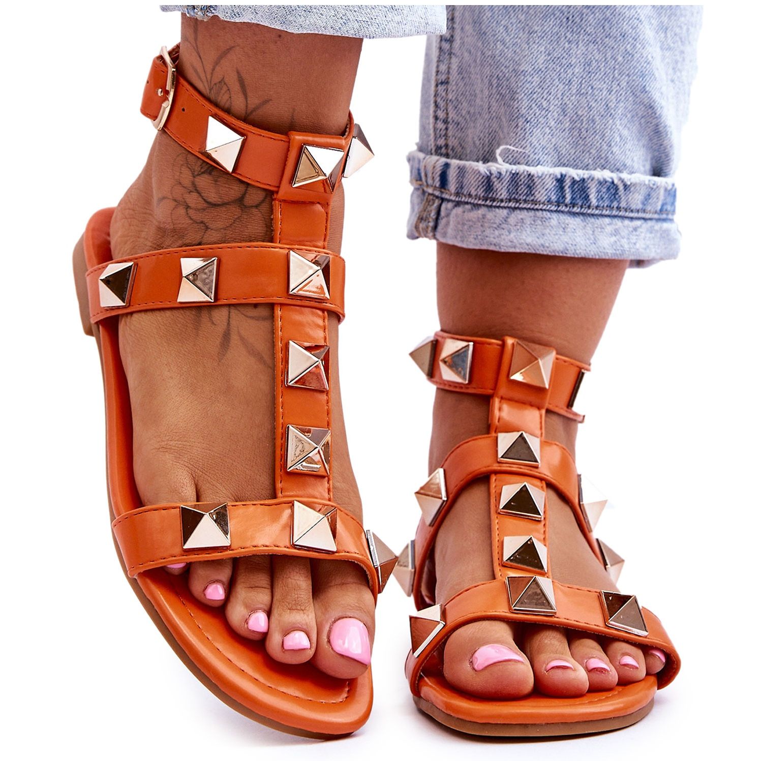 Inna marka Sandália feminina de couro com tachas grandes laranja Mishigan