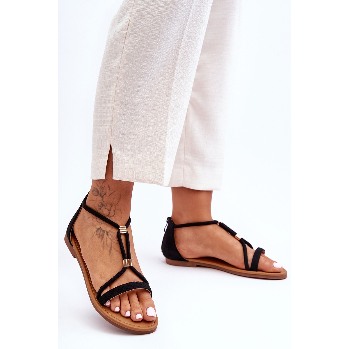 - Modelo: Sandálias femininas planas com zíper