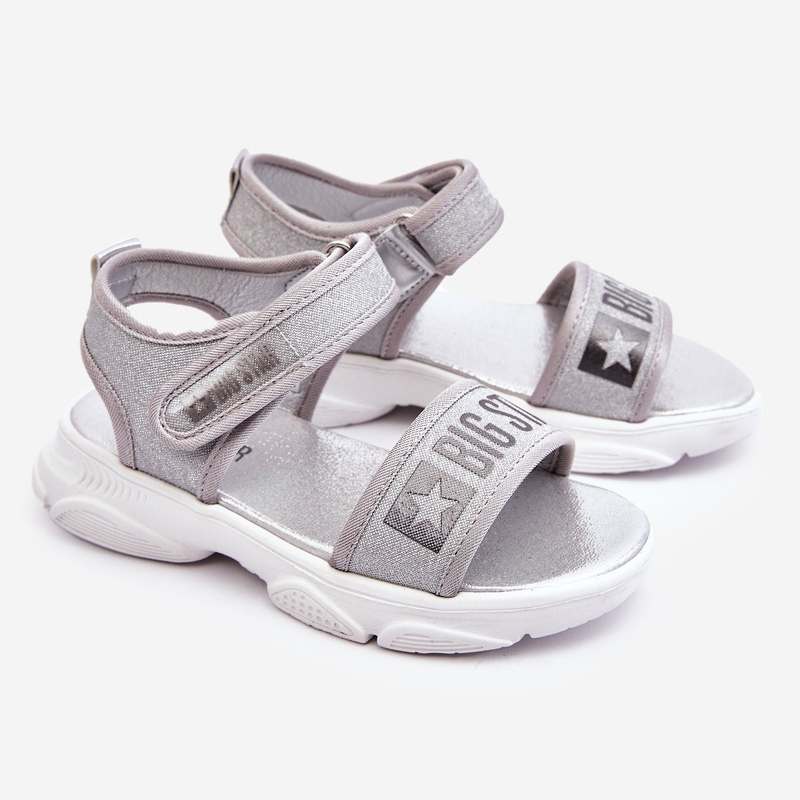 Detalhes: Sandália infantil com velcro Big Star LL374194 prata