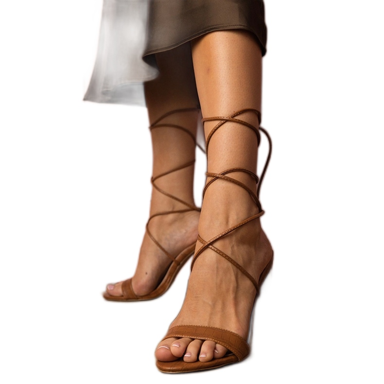 Detalhes: Sandália marrom com cadarço, Aceline.
