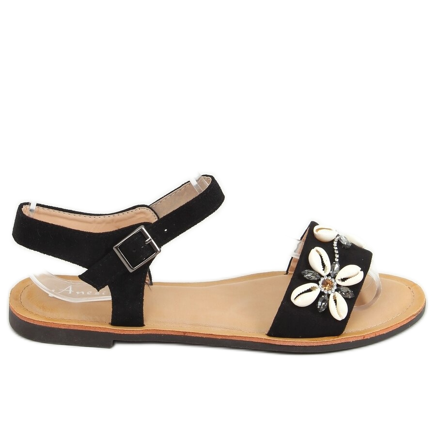 As sandálias Mason Black são a escolha perfeita para mulheres que desejam adicionar um pouco de elegância aos seus estilos de verão. Confeccionadas em camurça ecológica, essas sandálias pretas combinam um design clássico com um toque moderno de pedras brilhantes e conchas decorativas.