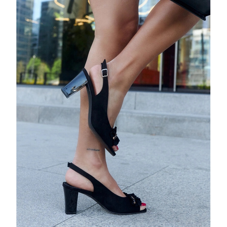 Sandálias elegantes e elegantes no Black Mukaram Post é uma ótima opção para todas as mulheres que querem se sentir confortáveis e excepcionalmente durante os dias de verão. Graças ao seu design modernista, essas sandálias enfatizam perfeitamente toda estilização de verão, e o babado decorativo lhes dá um charme único.