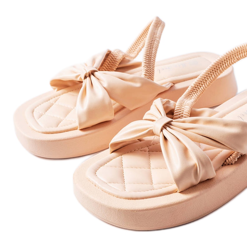 Sandálias femininas elegantes e universais em uma sombra bege nua. Um corte clássico em uma plataforma baixa com um arco sutil é a solução perfeita para o estilo de primavera-verão, confortável e fácil de combinar com muitos estilos.