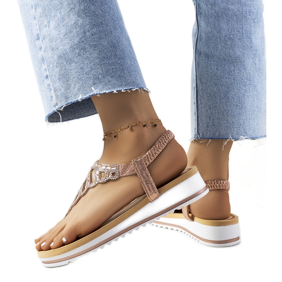 Seu lindo tom de rosa champanhe e decorações sutis em forma de zircões e strass conferem-lhes um brilho único, combinando perfeitamente com os looks de verão. A altura da plataforma de 3,5 cm garante estabilidade e ao mesmo tempo alonga opticamente as pernas.