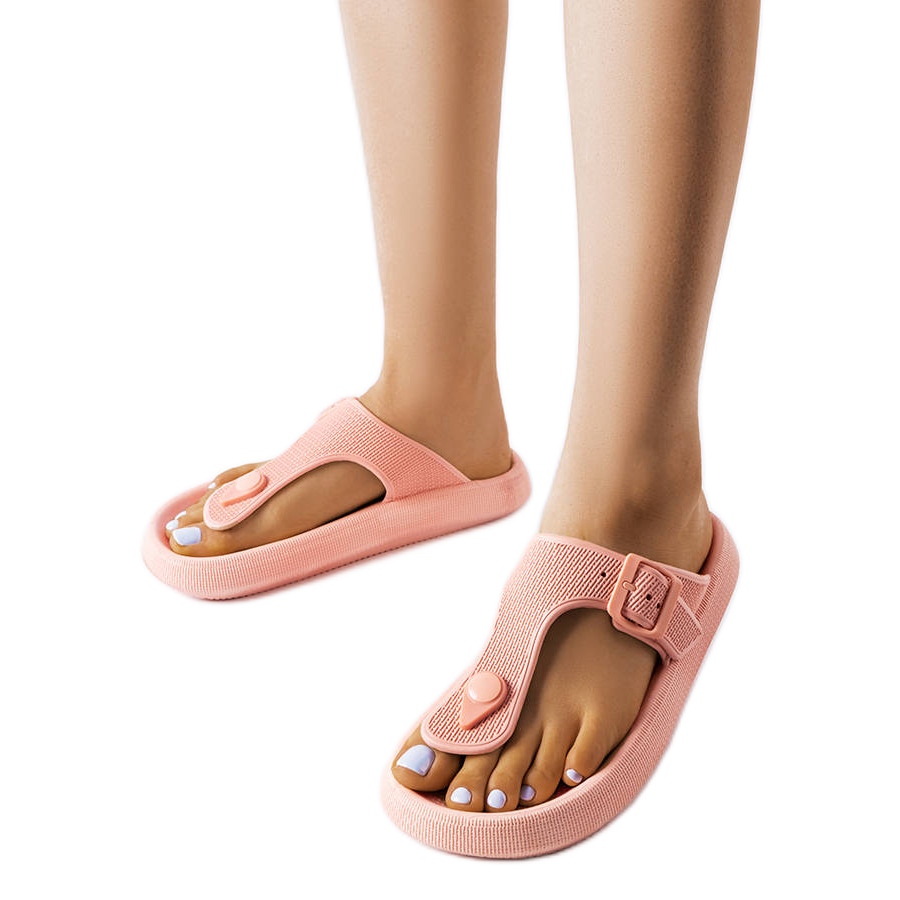 O design clássico e minimalista em uma linda cor rosa os torna a escolha perfeita para diversas ocasiões. Desde passeios na praia, passando por passeios pela cidade, até saídas à noite de verão. A singularidade deste modelo também é enfatizada pela plataforma de 3 cm de altura, que agrega elegância e ao mesmo tempo garante estabilidade e conforto ao caminhar. Esta é uma alternativa perfeita para mulheres que desejam adicionar alguns centímetros à sua altura sem abrir mão do conforto.